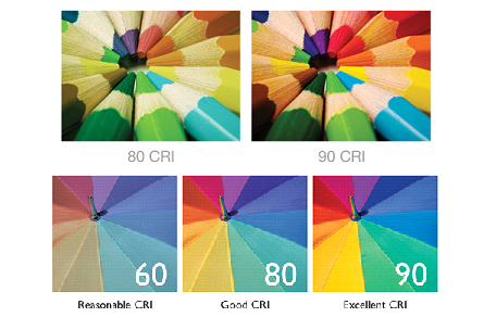 این شاخص برای نور لامپ های مختلف بین صفر تا صد تعریف می شود و هرچه CRI در یک لامپ، به عدد صد نزدیکتر باشد، اشیا زیر نور آن لامپ طبیعی تر و واقعی تر جلوه می کنند. مقدار CRI نور خورشید، صد است زیرا طیف نوری خورشید برای چشم انسان کامل است و در نتیجه امکان دیدن همه رنگها در زیر نور خورشید امکانپذیر است. منابع نوری دیگر طیفهای نوری متفاوتی دارند که بهترین آنها به ترتیب مربوط به لامپ های رشته ای و لامپ ال ای دی و متال هالید است.